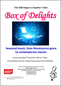 Saturday 6 December 7.30pm - The Hill Singers - Box of Delights.